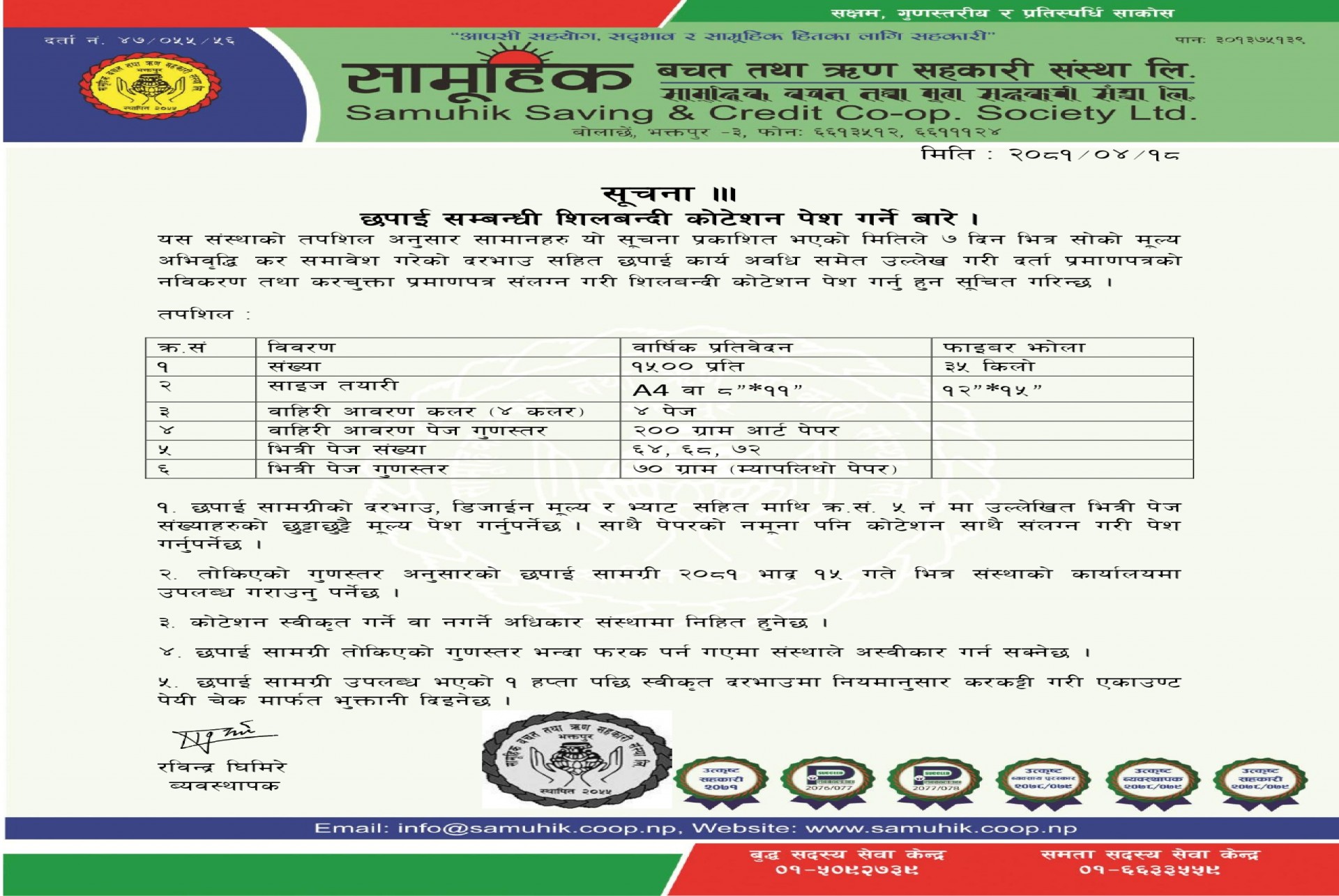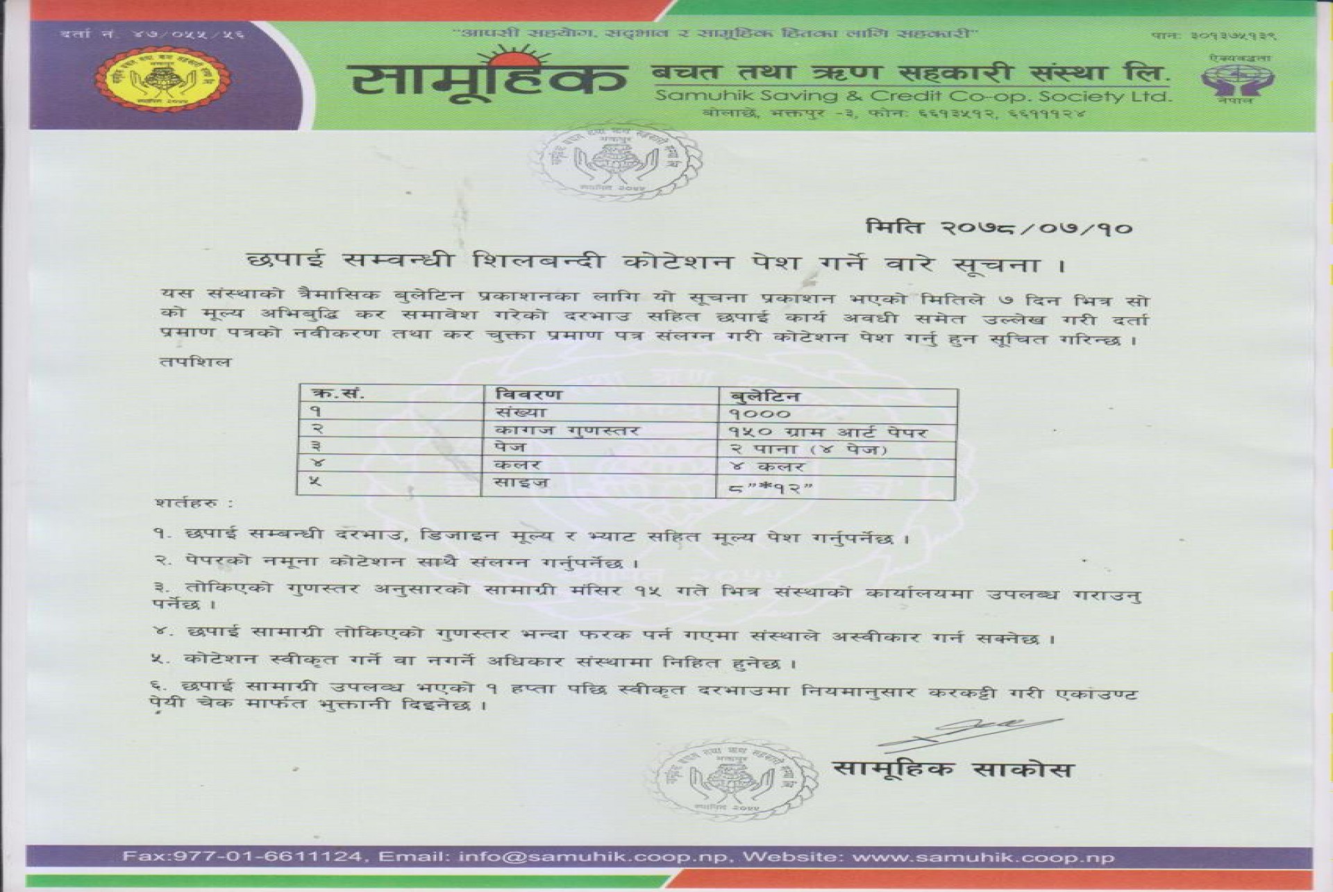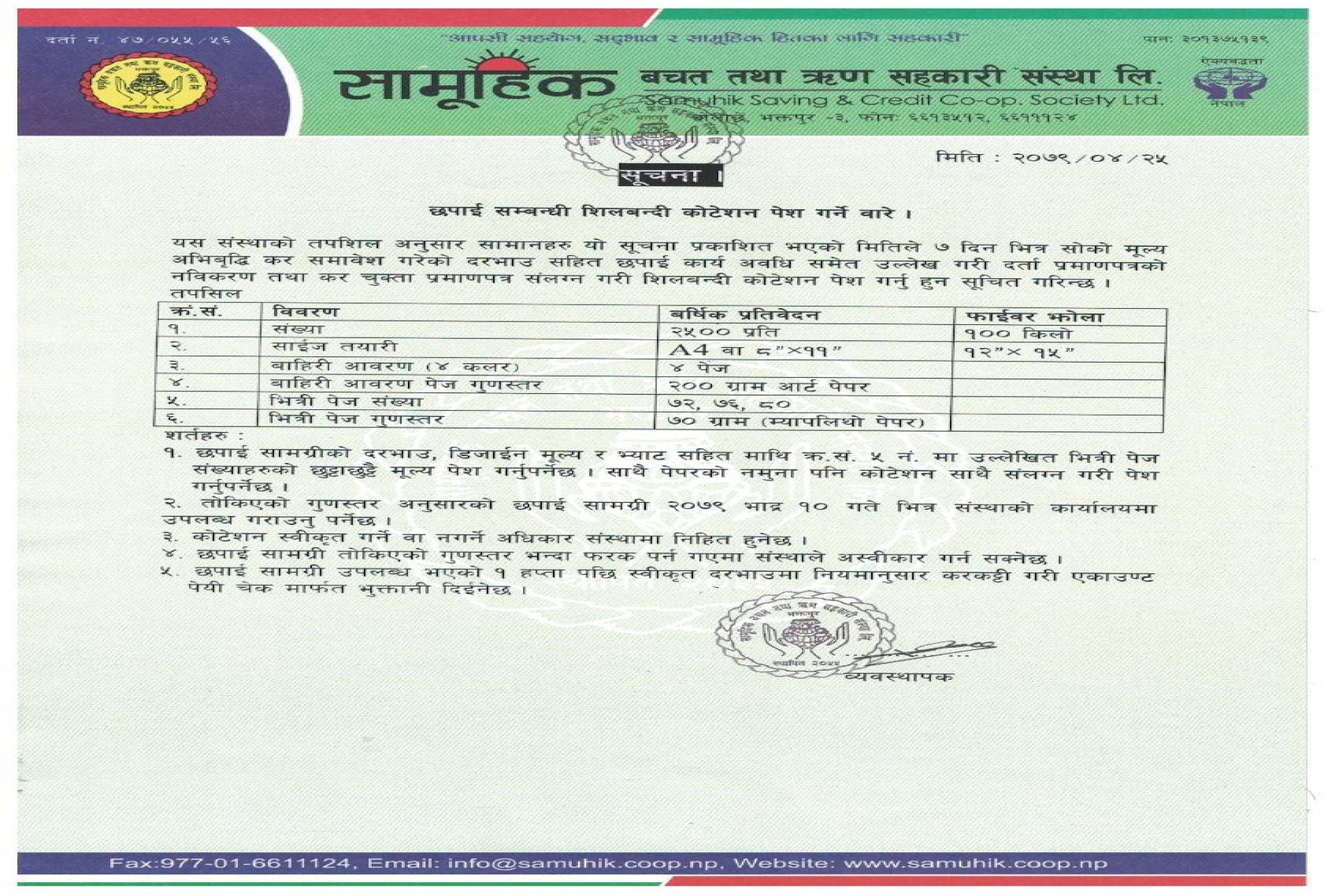 छपाई सम्बन्धि शिलबन्दी कोटेशन पेश गर्ने बारे