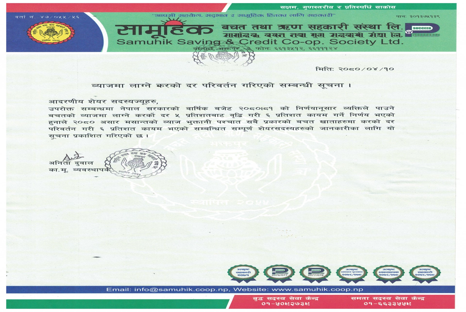 Sajilo Awadhik Bachat's Interest Change