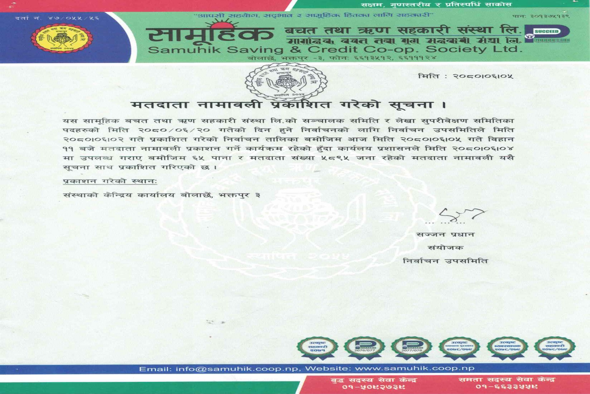 सूचीदर्ता गराउने सम्बन्धि सूचना ।