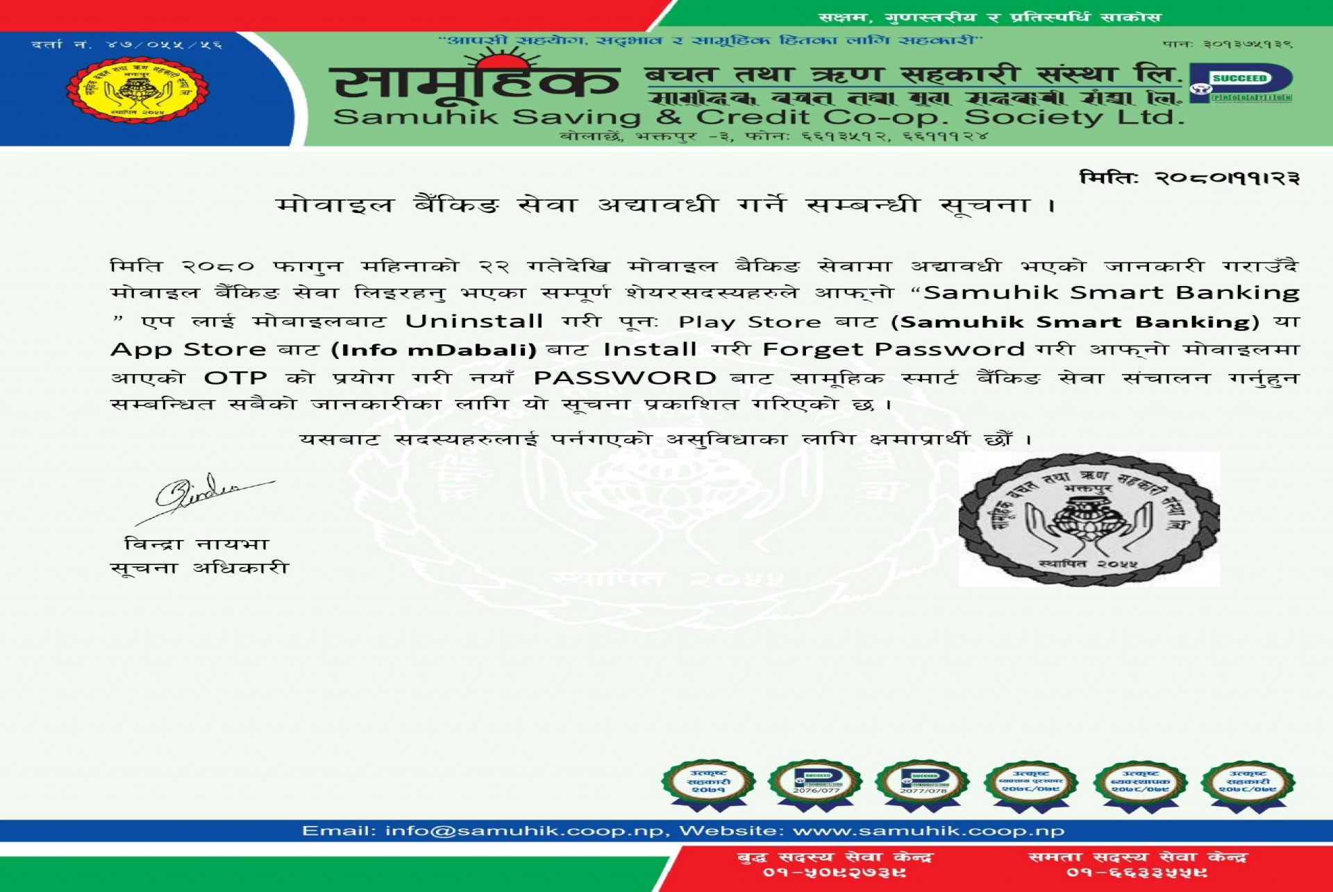 मोवाइल बैकिङ सेवा बन्द रहने सम्बन्धि सूचना