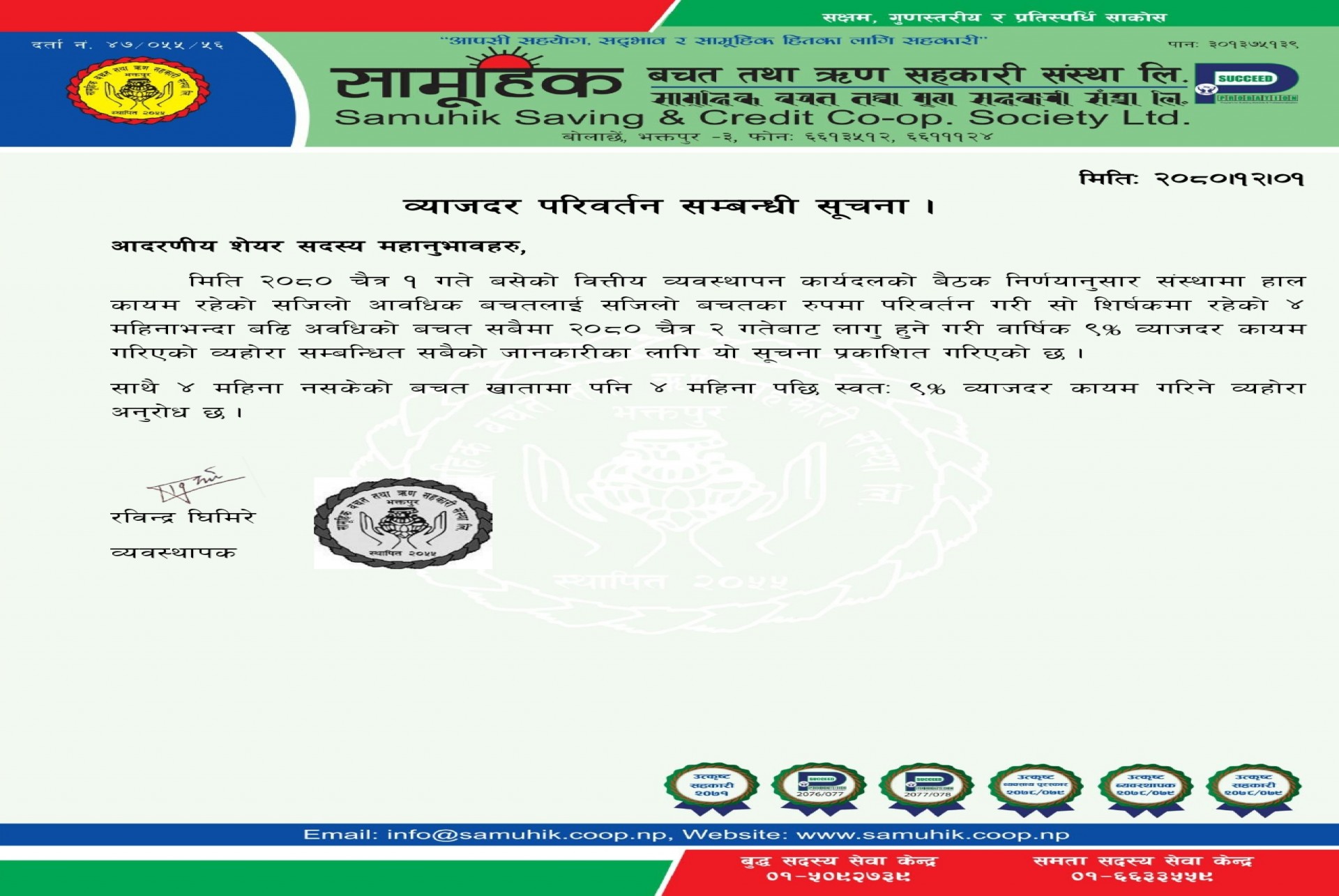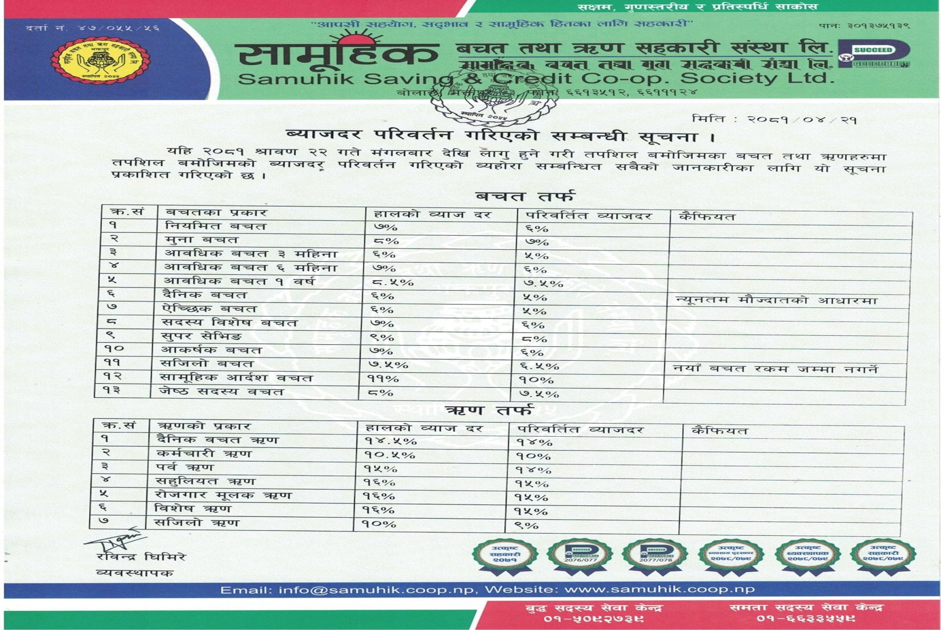ब्याजदर परिवर्तन गरिएको सम्बन्धी सूचना