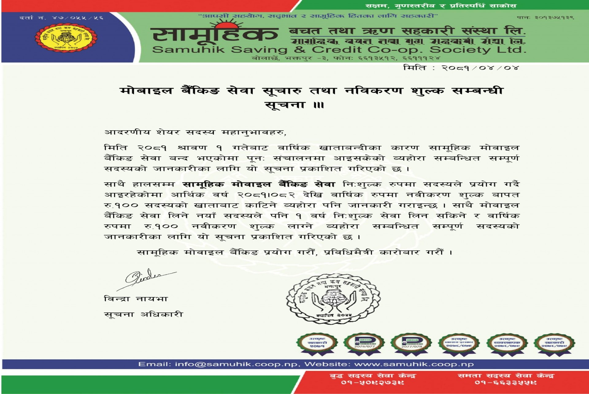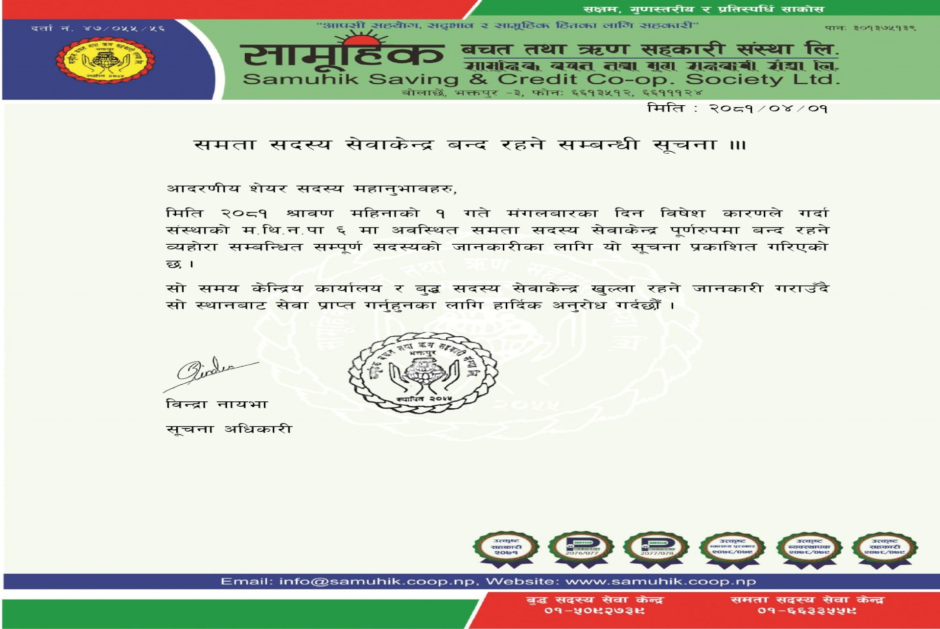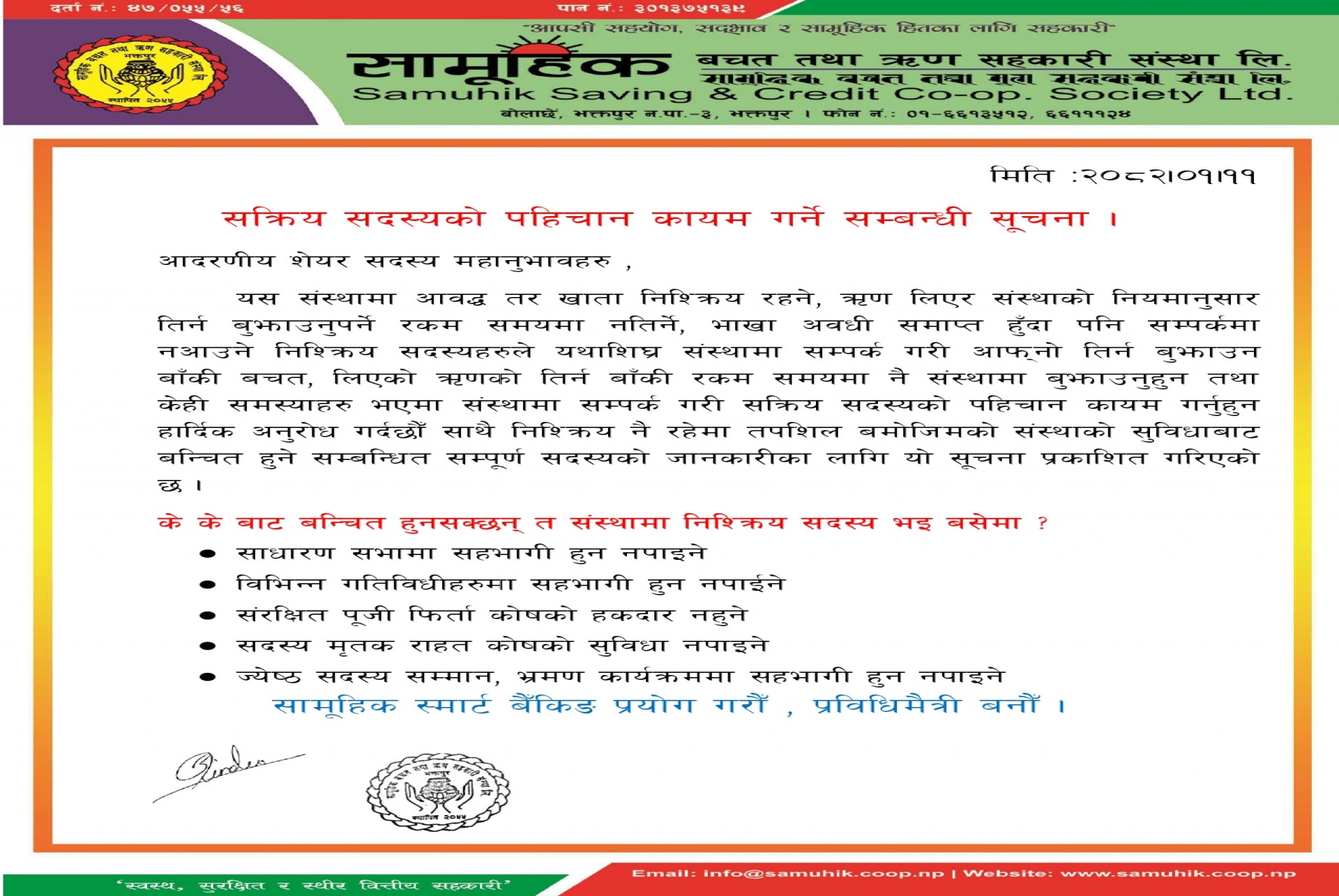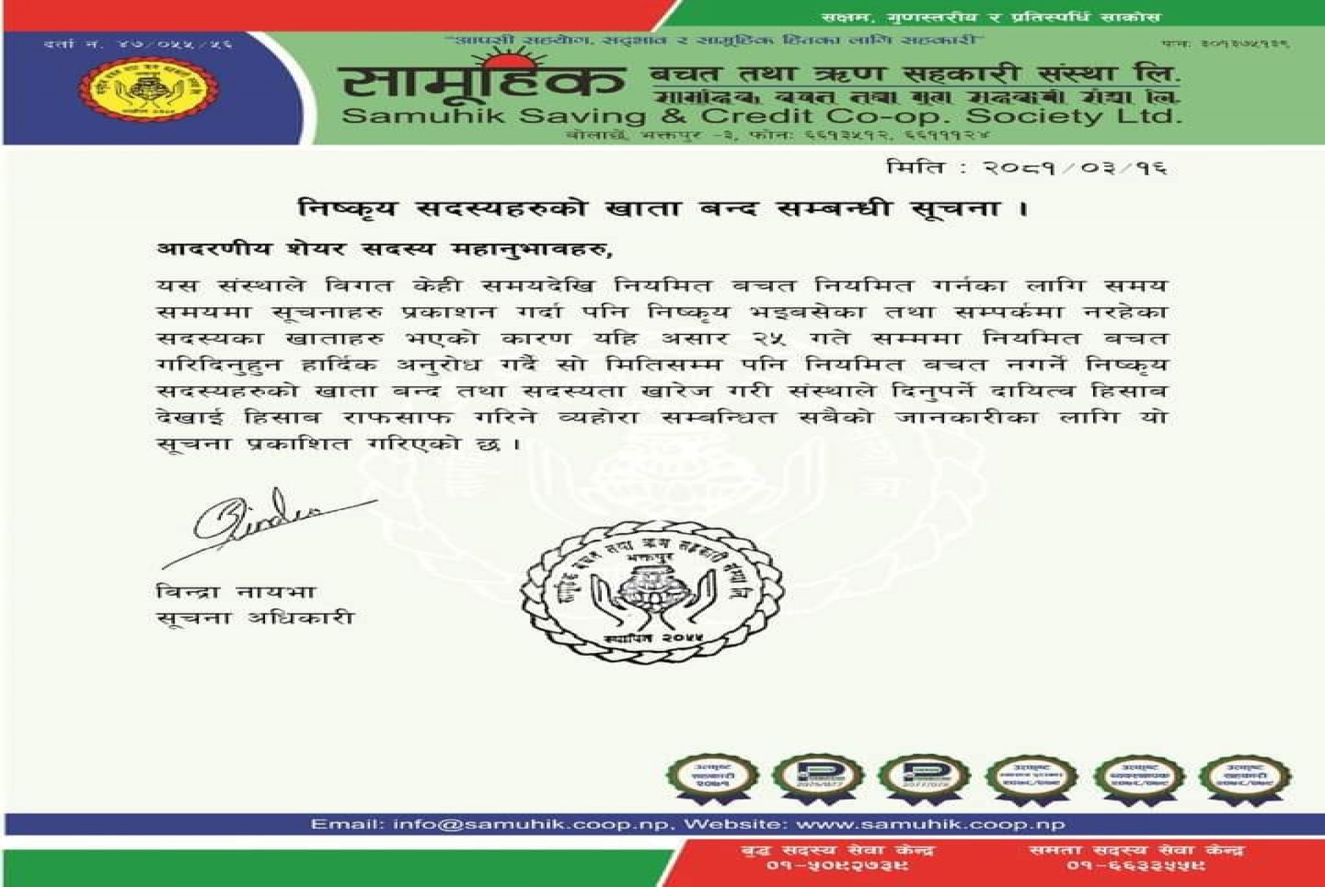 निष्कृय सदस्यको खाता बन्द सम्बन्धि सूचना