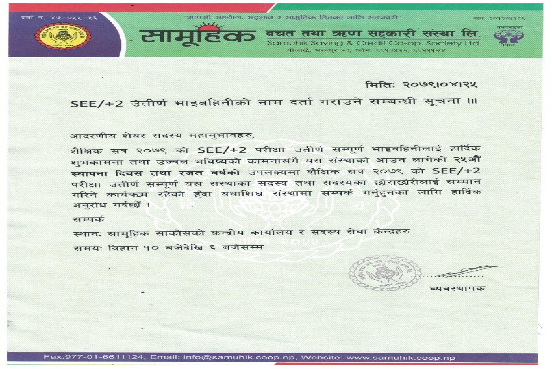 २५ औँ वार्षिक साधारणसभासम्बन्धी सूचना