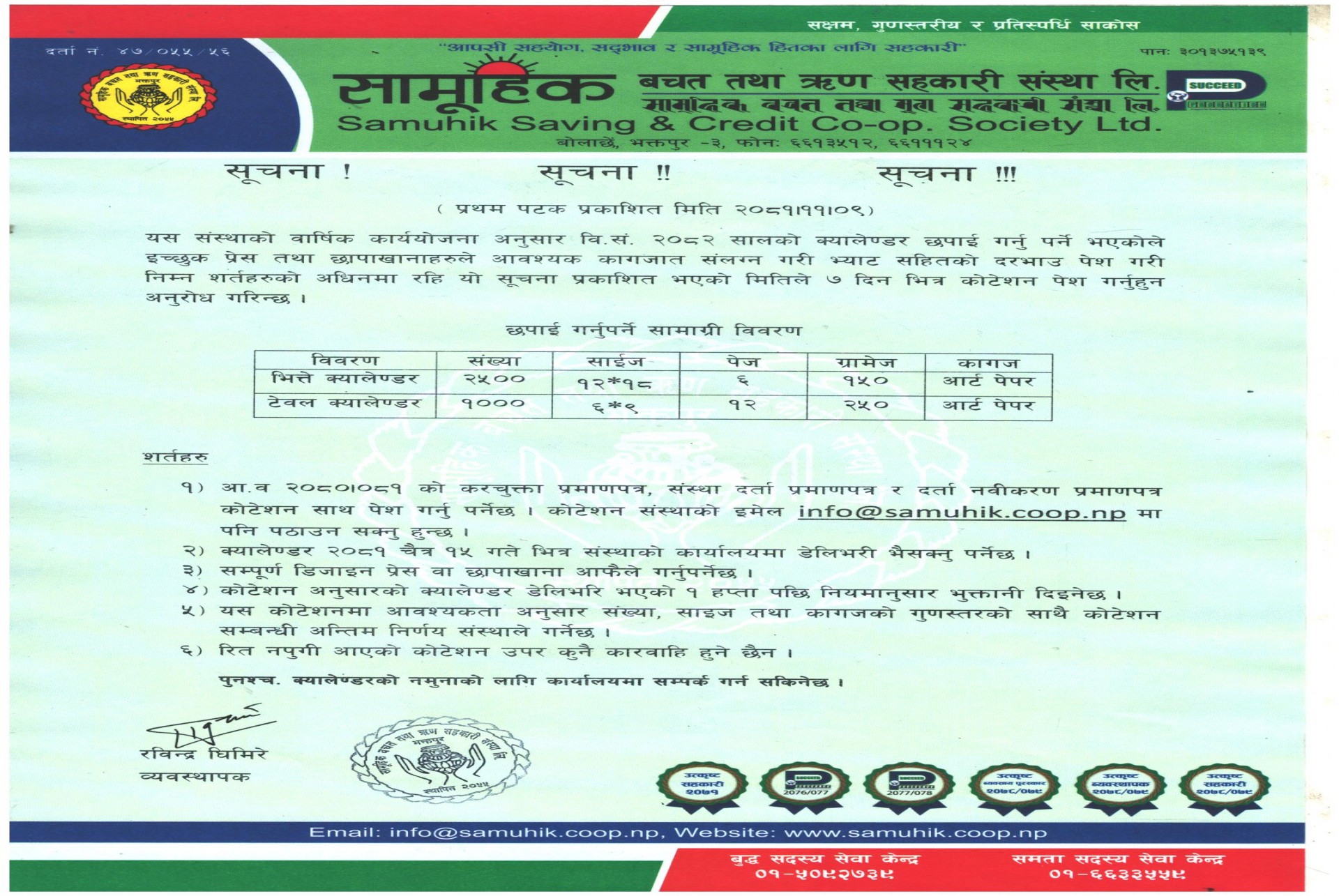 कोटेशन स्वीकृत गरिएको सम्बन्धी सूचना