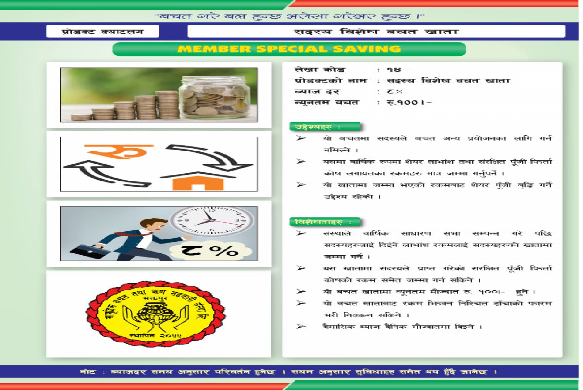 व्यवस्थापकको प्रतिवद्धताः सहकारी मूल्य मान्यता, सिद्धान्त, सहकारी ऐन , नियम अनुसार प्रविधिको उच्चतम प्रयोग गरी सदस्य सेवामा समर्पित यस संस्थालाई वित्तीय रुपले सवल र सक्षम बनाइनेछ । संस्थाले तय गरेको परिकल्पना...
